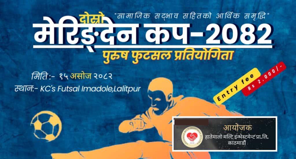 दोश्रो मेरीङ्देन कप फुटसल प्रतियोगिता २०८२ असोज १५ गते हुने ।